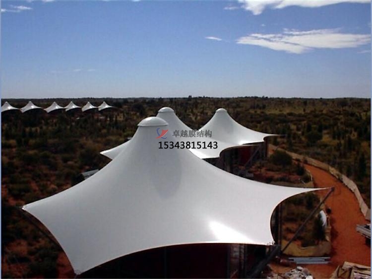 張拉膜景觀的曲面外形使其有雕塑感。膜面通過張力達到自平衡。