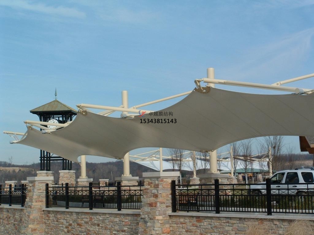 膜結構工程規??纱罂尚?,有街頭小品,也有候機大廳、體育場;壽命可長可短,可以是臨時性帳篷,也可以是30年以上的長期建筑;色彩可素可花,膜材料像布一樣可以染成各種花色,尤其是膜材料的半透明性能,使夜空中的膜建筑在燈光照射下,呈現出夢幻般的色彩。