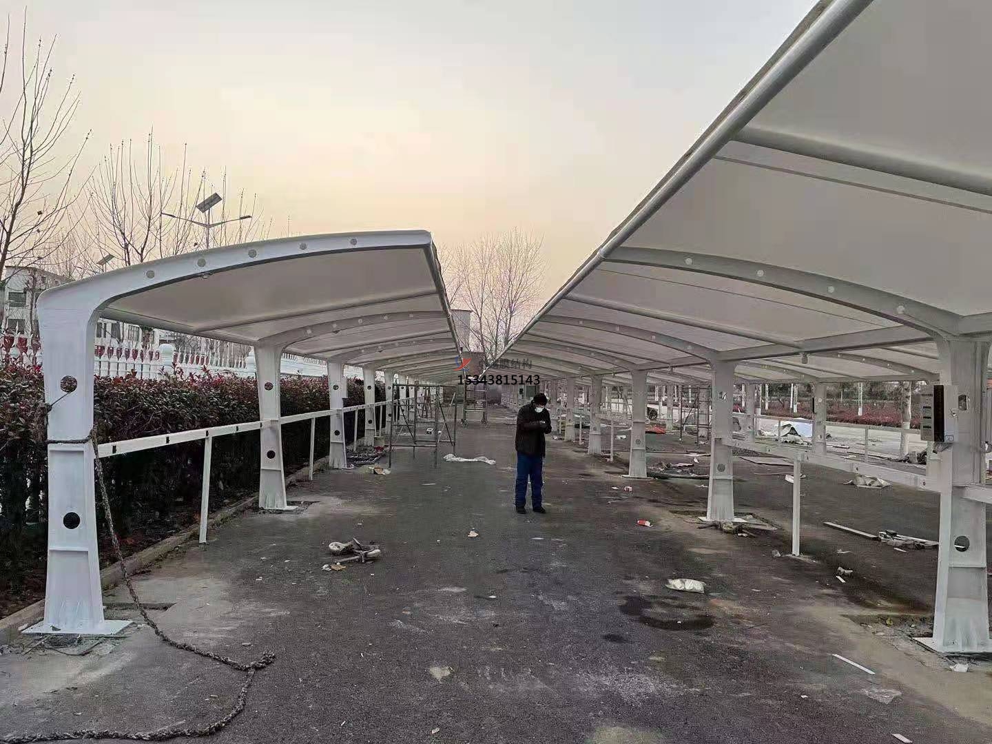 :充電樁車棚可以采用膜結構設計,膜材料色彩豐富,且具有良好的透光性、自潔性和耐久性。膜結構車棚的造型可以靈活多變,適應不同的場地和設計要求。