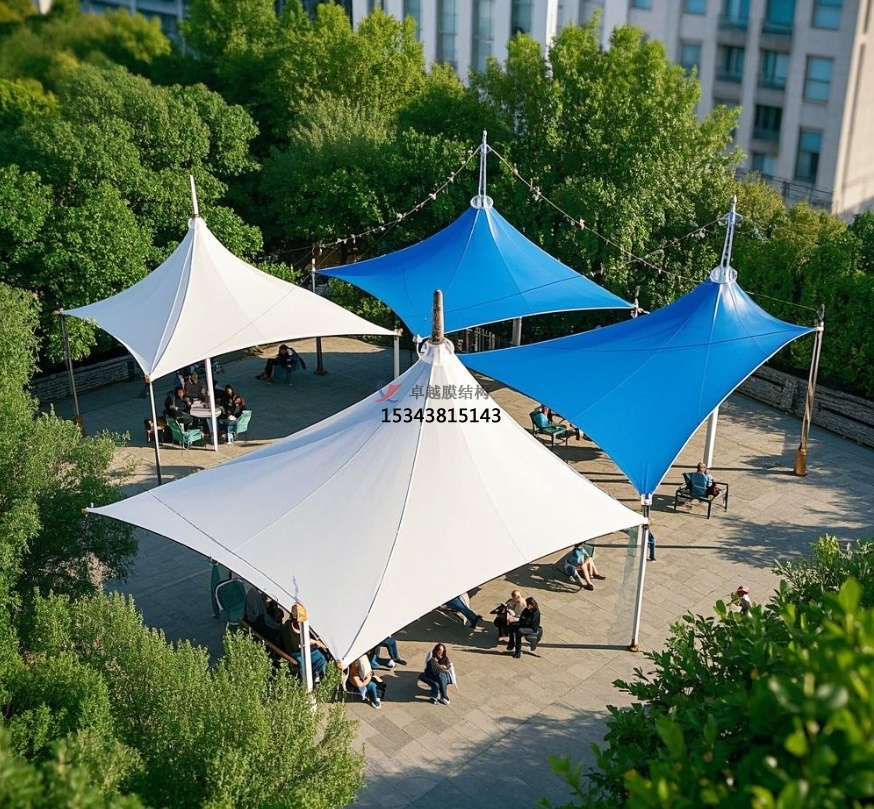 膜結(jié)構(gòu)景觀亭放置在公園的開闊草坪、花壇中央等顯眼位置,成為公園的標志性景觀。其多樣的造型,如傘狀、蘑菇狀、飛鳥狀等,吸引著游客的目光,成為公園的視覺焦點。亭內(nèi)設(shè)置的座椅、茶幾等休閑設(shè)施,供游客休息、交談,部分景觀亭配備的照明設(shè)備,在夜間亮起,將景觀亭裝點得格外美麗,成為公園亮化景觀的一部分,為公園增添浪漫氛圍。