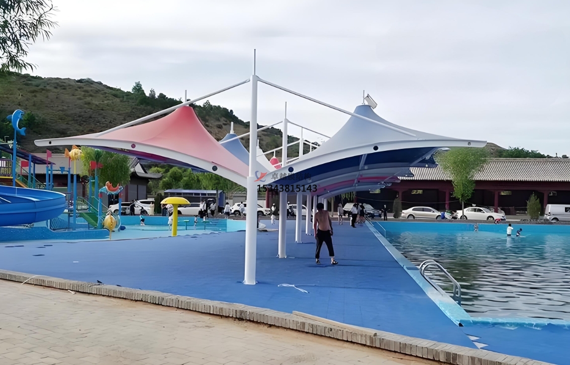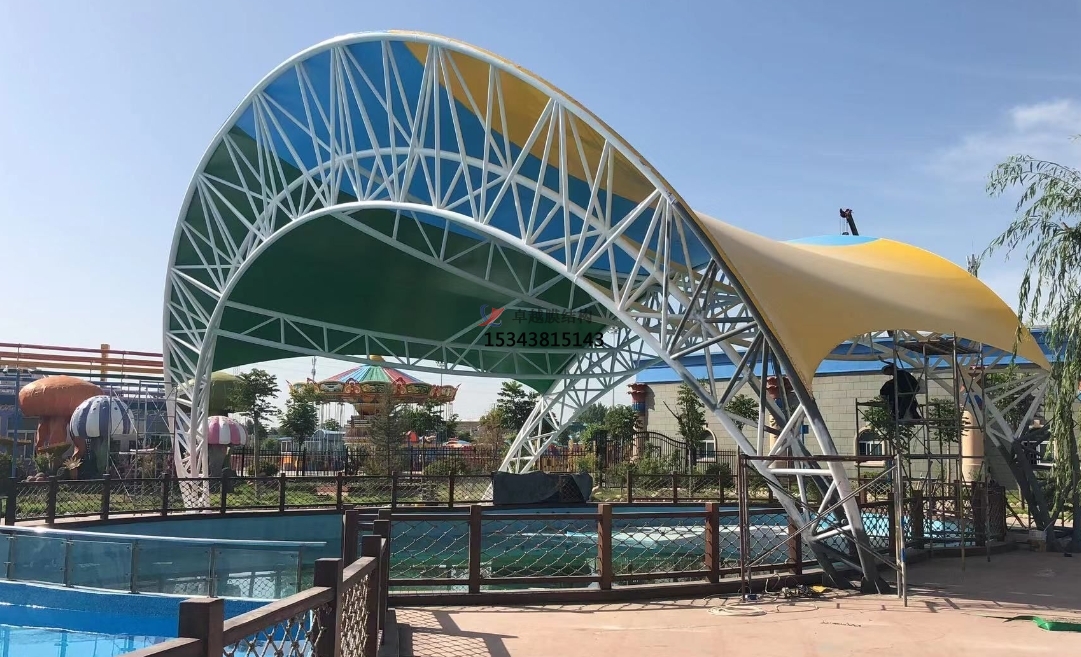 膜結(jié)構(gòu)遮陽棚是水上樂園中不可或缺的設(shè)計(jì)元素。它不僅能為游客提供遮陽、防雨的功能,還能與樂園的整體景觀融為一體,增添一道獨(dú)特的風(fēng)景線。