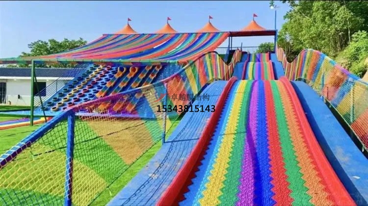 大同游樂設備彩色膜結構是一種常見的游樂設施,通常由彩色膜結構構成,具有輕盈、美觀、耐用等特點。這種游樂設備通常用于室內或室外的游樂場、主題公園、商業中心等場所,為人們提供娛樂和休閑的體驗。