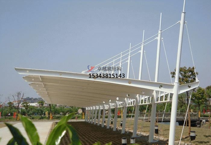 膜結構雨棚是一種全新的建筑結構形式,它集建筑學、結構力學、精細化工與材料科學、計算機技術等為一體,具有很高技術含量。其曲面可以隨著建筑師的設計需要任意變化,結合整體環境,建造出標志性的形象工程。