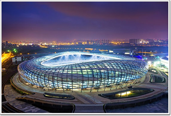 “ETFE”顯示英文Ethylene Tetra Fluoro Ethylene的簡稱,中文名為丁二烯-四氟乙烯預聚物。ETFE膜材具備較高的抗壓強度、耐沖擊抗壓強度及抗撕裂工作能力。ETFE膜材的薄厚一般在0.05~0.1毫米。隨之薄厚的提升,膜材的強度將提升,一起也更脆,擴大了生產加工難度系數。ETFE原材料的典型性使用方法是,將雙層或多層膜材“電焊焊接”一起,運輸到施工工地,隨后打氣使他們澎漲成氣枕。