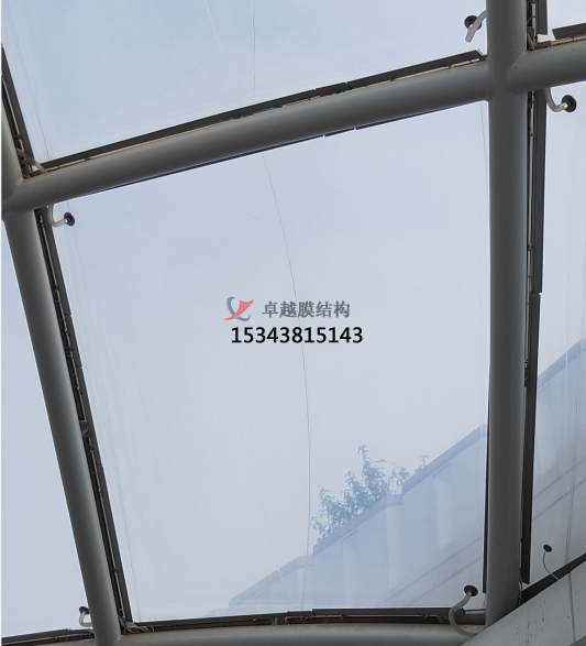 2、展開膜體前,在平臺上鋪設臨時布料,以保護膜材不被損傷及膜材清潔,嚴格按確定的順序展開膜體。打開包裝前應校對包裝上的標記,確認安裝部位,并按標記方向展開,盡量預防展開后的膜體在場內移動。在展開的膜面上行走時要穿軟底鞋,不得佩帶硬物,以防膜體受到刮傷。