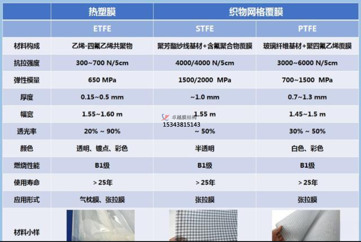 其實,每種膜材都有各自不可替代的優點,同時又有一時難以克服的不足,十全十美的膜材可能不現實。這就需要業主和設計師,根據具體項目的特點,做出適當的取舍,充分利用某種膜材的優點、同時通過其它技術手段彌補其不足,做到物盡其用,好鋼用在刀刃上。