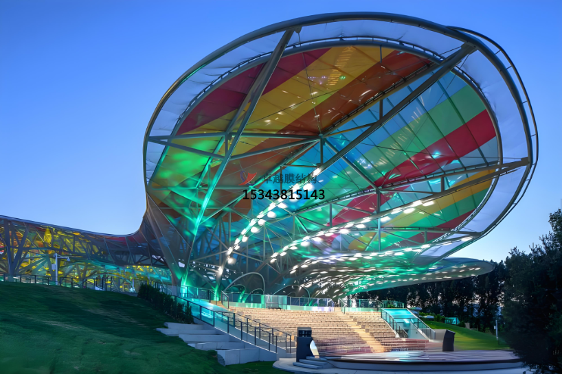 同時,ETFE膜結構的延展性大于400%,確保膜結構可以經過張拉力形成各種三維空間曲面造型。
