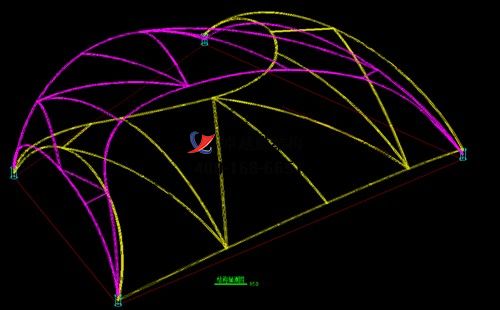 本工程膜材采用白色高端國產星益達PVDF高自潔環保建筑膜材,鋼結構采用更好的標準Q235B鋼材,表面采用酚醛底漆處理,面漆采用白色鋼結構專用快干磁漆。