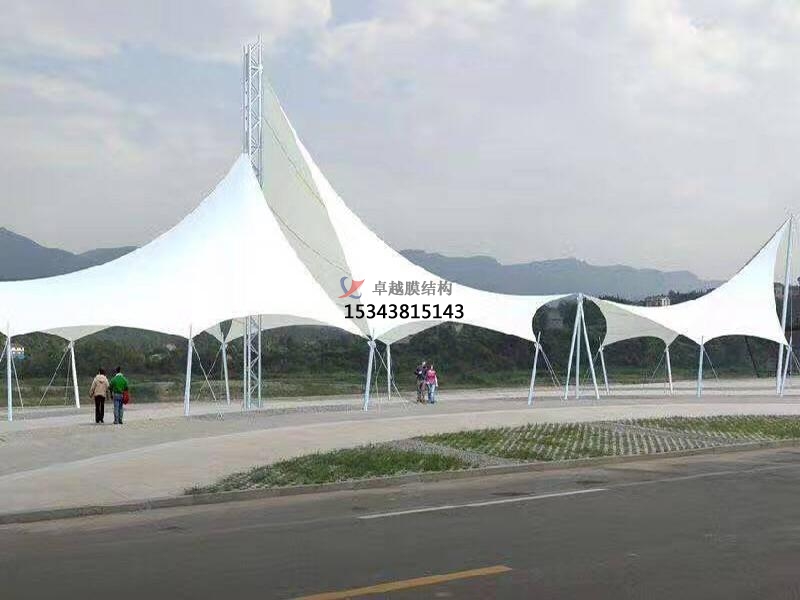 膜結構景觀又叫張拉膜結構景觀,是21世紀更具代表性的建筑形式。打破了純直線建筑風格的模式,以其獨有的優美曲面造型,簡潔、明快、剛與柔、力與美的完美組合,同時給建筑設計師提供了更大的想象和創造空間。