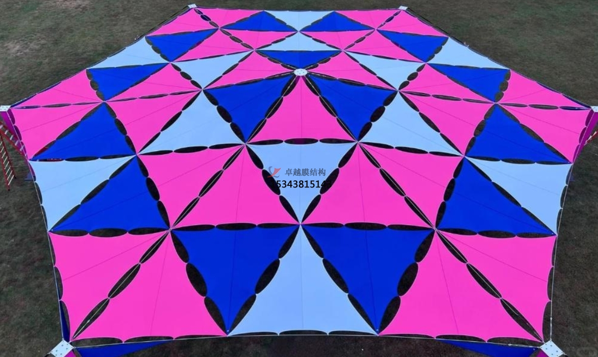 膜材具有一定的透光性,這為膜結構帶來了光與影的奇妙變化。白天,陽光透過膜材,在地面上投射出柔和的光影,形成一片片斑駁陸離的圖案,為廣場和公園增添了幾分詩意。人們行走在光影之中,感受著陽光的輕撫,仿佛置身于夢幻的世界。夜晚,通過精心設計的燈光系統,膜結構又搖身一變,成為光的藝術作品。燈光從內部或外部照射,使膜結構呈現出五彩斑斕的色彩,照亮了城市的夜空,吸引著人們的目光,為城市的夜晚增添了獨特的魅力。