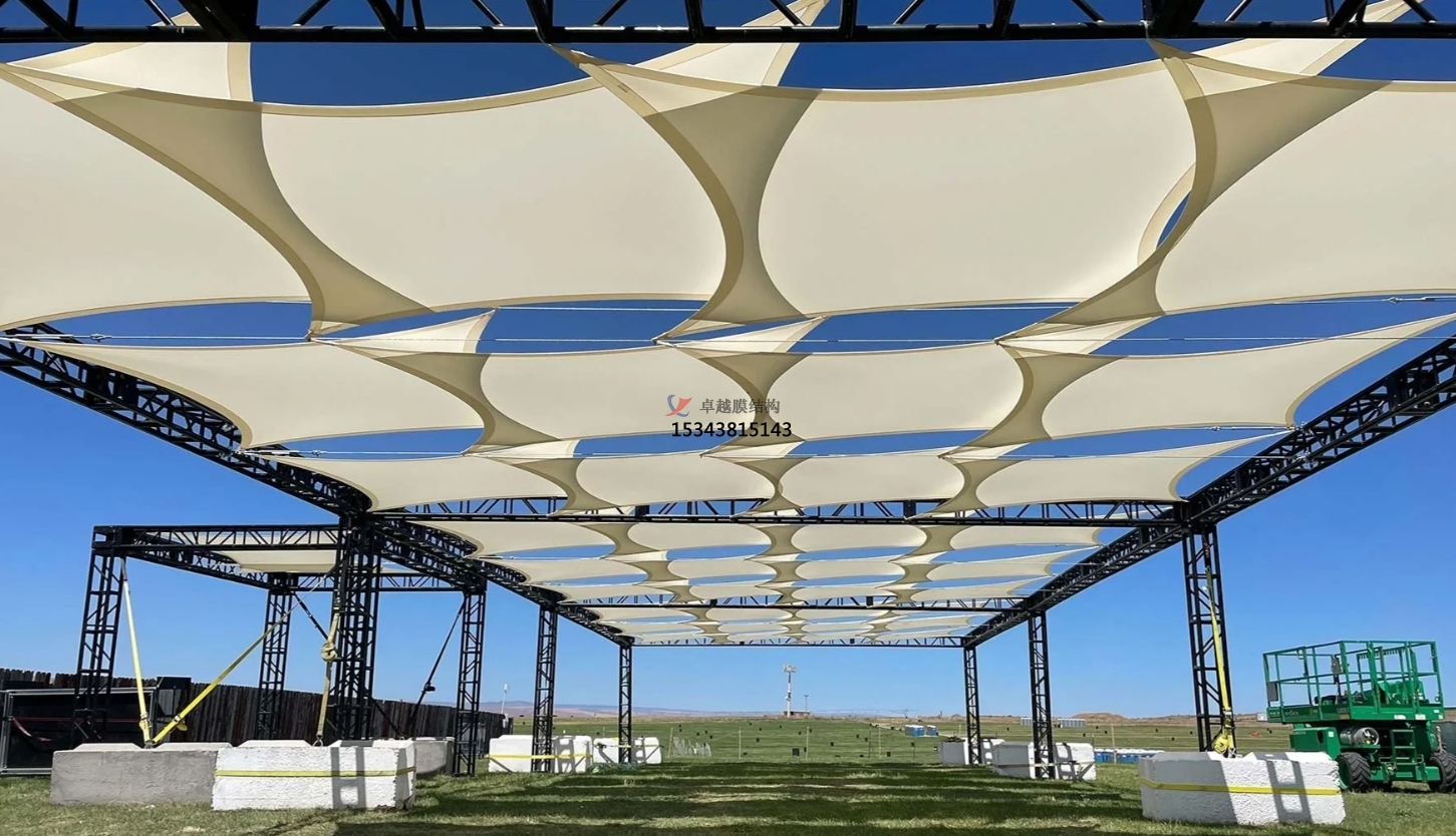 膜結構具有出色的環境融合性。在公園的自然環境中,白色的膜材與翠綠的樹木、湛藍的天空相互映襯,相得益彰。它不會突兀地破壞自然景觀,反而像自然生長出來的一部分,巧妙地融入其中。在廣場這樣的城市空間,膜結構又能結合周邊的建筑風格,以現代感十足的造型為城市增添活力,成為城市景觀的有機組成部分。無論是在古典風格的廣場周邊,還是在充滿現代氣息的公園內,膜結構都能找到與之契合的設計方案,和諧共生。