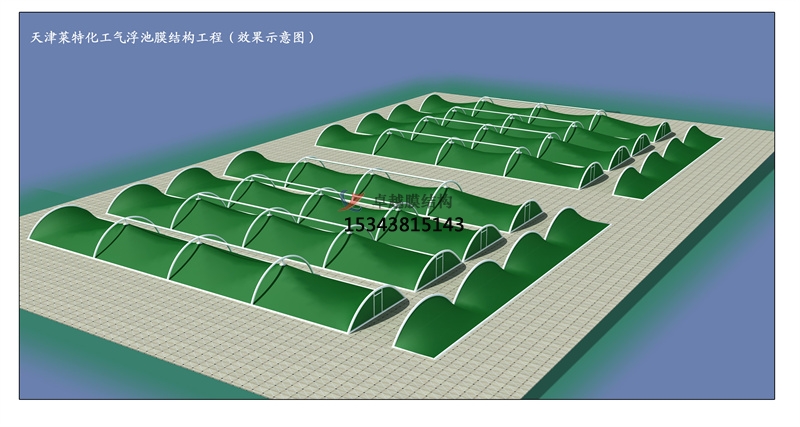 7、方便管道對接:便于與現場設備管道密封連接:所有立面的膜結構均可按需要現場開洞,現場熱熔焊接恢復氣密性。