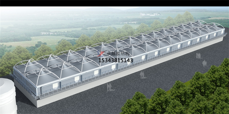 4、安裝快捷:鋼結構以及膜材都是工廠加工后運送現場直接進行安裝,減少了對場地的占用,尤其是舊池體改造項目可采取結構整體吊裝,不影響池體內部的設備運轉;