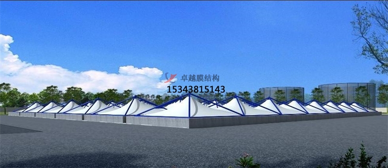 8、造型美觀:極具現代建筑感,造型飄逸美觀;自潔性能好,由于膜材表面具有PVDF自潔涂層,能有效減少膜材表面的積灰的附著力,通過自然雨水即可以得到有效清洗,其抗污能力遠遠大于其他傳統覆蓋材料,能使其長久保持亮麗的觀感;良好的光學性能。