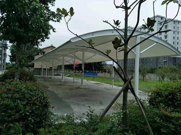 膜結構車棚,是以建筑織物,即膜材料為張拉主體,與支撐構件或拉索共同組成的結構體系,它以其新穎獨特的建筑造型,良好的受力特點——成為大跨度空間結構的主要形式之一。膜材料是指聚酯纖維基布或PVDF、PVF、PTFE等不同的表面涂層,配以優質的PVC組成的具有穩定的形態,并可承受一定載荷的建筑紡織品。它的壽命因不同的表面涂層而異,一般可達成10-20年。