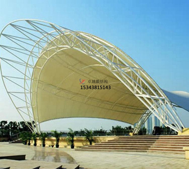 一個城市的中心區反映一個城市的地理風貌和民族風情,同時,景觀膜結構遮陽棚也是一個城市文化發展程度的標志。而景觀設計要求其具有廣泛的可讀性、雅俗共賞,既有超凡脫俗的藝術價值,又能使大眾喜聞樂見與大眾息息相通。膜結構以其輕盈飄逸的造型、柔美并帶有力量的曲線和大跨度和大空間的鮮明個性和標識性,應用于城市小品設計中。