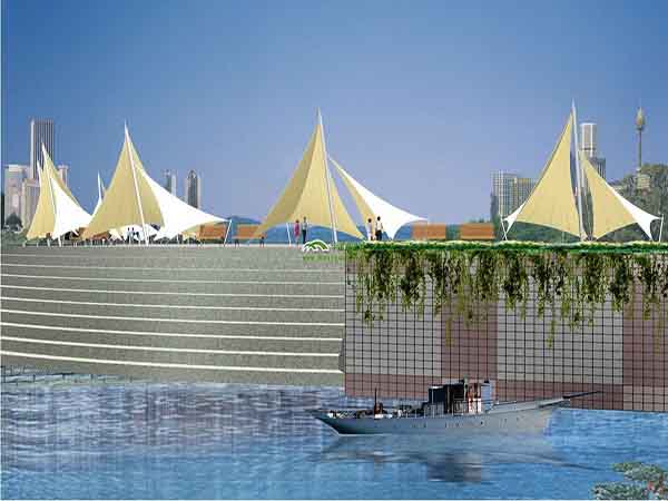 工程結構形式:骨架式膜結構景觀,自然排水。