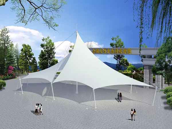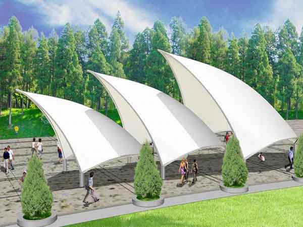 1、景觀膜結構是一種新型的建筑結構形式,同時是目前遮陽系列更具代表和發展潛力的遮陽產品,是采用新型高強度材料PVP或Teflon和鈦鋁合金等鋼制材料組合而成 ,能夠產生預張應力,形成一次些空間結構,并且能夠承載額外的荷載。這種膜結構遮陽產品打破了傳統的直線型遮陽產品得全世界界的認可,讓建筑設計師了有了更大的想象和創造空間,該產品以其獨有的優美曲面造型,簡潔、明快、鋼與柔、力與美的結合,呈現給人以耳目一新的感覺。我公司在紹興地區承接了玉屏山公園景觀小品、萬達廣場景觀小品、紹興八佰伴購物中心膜結構景觀小品的設計施工,簡介如下: