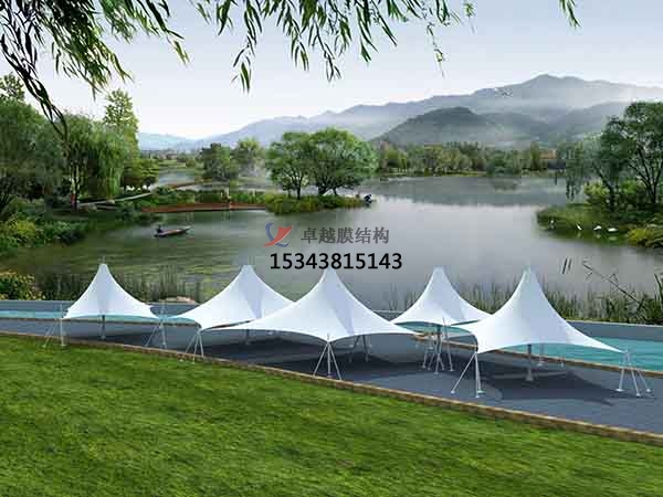 5、膜結構以造型學、色彩學為依托,可結合當地自然條件及民族風情,設計出屬于自己獨特結構,使得成為一道亮麗的風景線。并且經濟性較實用、采用膜結構會有很大的優勢,其成本只相當于傳統棚的二分之一左右,而且膜結構能夠拆卸,易于搬遷。表面涂有聚四氟乙烯涂層,不易附著灰塵,依靠雨水沖洗就能保持潔凈。