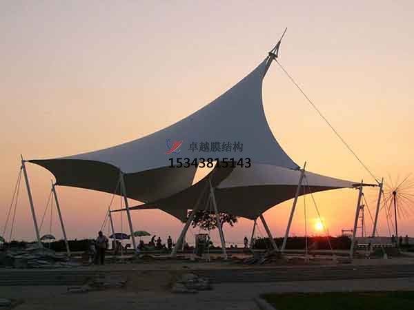 景觀園林的規劃和建設成為現代城市規劃的重要組成部分,在以后的建設里會變得越來越重要。膜結構輕巧、別致的造型在公共場所的建設中擔當了重要角色,除了滿足防風雨、防日曬等基本功能外,并有較好的標識招攬效果,展現了人們個性化的一面。膜結構景觀,自重輕,具有良好的受力特點——成為大跨度空間結構的主要形式之一。膜結構景觀具有哪些特點呢?