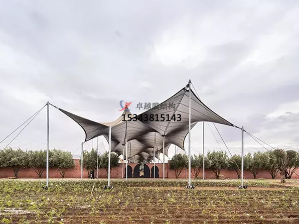 膜結構,是用高強度柔性薄膜材料經受其它材料的拉壓作用,而形成的穩定曲面,能承受一定外荷載的空間結構形式。其造型自由、輕巧、柔美,充滿力量感,阻燃、制作簡易、安裝快捷、節能、易于、使用安全等優點,因而使它在世界各地受到廣泛應用。