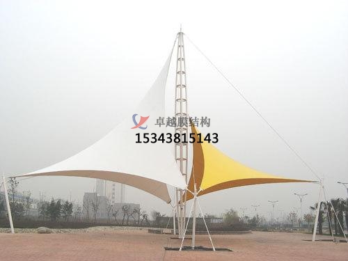 景觀膜結(jié)構(gòu)遮陽棚,是以建筑織物,即膜材料為張拉主體,與支撐構(gòu)件或拉索共同組成的結(jié)構(gòu)體系,它以其新穎獨特的建筑造型,良好的受力特點——成為大跨度空間結(jié)構(gòu)的主要形式之一。膜材料是指聚酯纖維基布或PVDF、PVF、PTFE等不同的表面涂層,配以優(yōu)質(zhì)的PVC組成的具有穩(wěn)定的形態(tài),并可承受一定載荷的建筑紡織品。它的壽命因不同的表面涂層而異,一般可達成10-20年。
