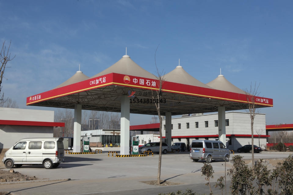 加油站膜結構,一般是指安裝在加油站的膜結構頂棚。膜結構頂棚因其自重輕,具有良好的受力特點,所以成為大跨度空間結構的主要形式之一,加油站膜結構也屬于其范疇。