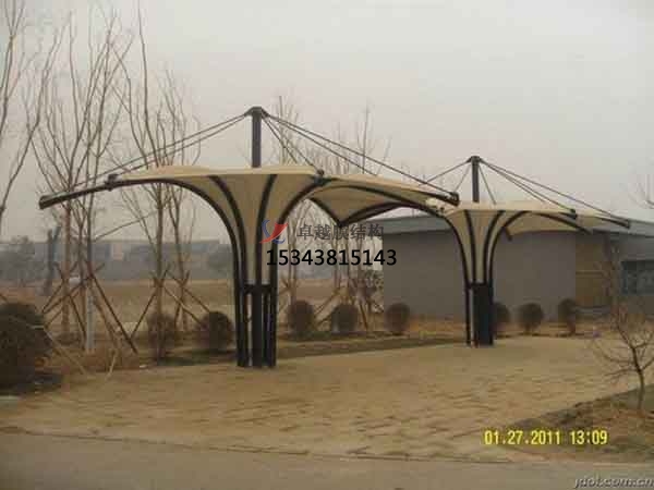 膜結構的柔性使其在任一荷載作用下均以更有利的形態(tài)承載。當然,結構的布置和形狀要根據(jù)荷載情況來進行設計和調(diào)整。設計要確何膜面與其輔助結構協(xié)調(diào)工作,以避免力在膜面或輔助結構上集中而達結構破壞的臨界值。