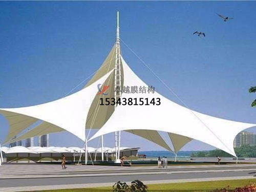 3.色彩性。商業廣場雨棚搭建在室內人們對白色或米白色膜材會有很好的色彩感知,因為這兩種色彩表現出對可見光具備線性光譜透射的特征。透射程度隨透射光波長的增添而增添,這使得透射光比入射光略暖和。透射光譜與纖維及其特性、涂層的厚度等。