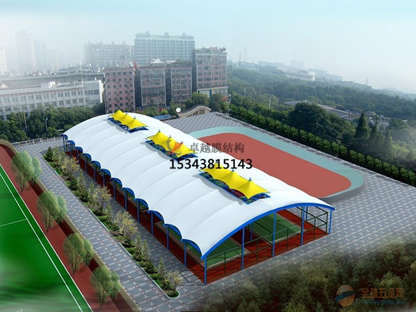 簡單的連接方法是將鋼索傳入和膜材熱合的邊套中,重要工程可以采用鋁合金或不銹鋼夾板和連接件來連接膜材和鋼索,當膜材直接連接于鋼性邊界上時,要盡量避免出現直角或銳角邊界形狀,以減少安裝難度,并避免產生應力集中。