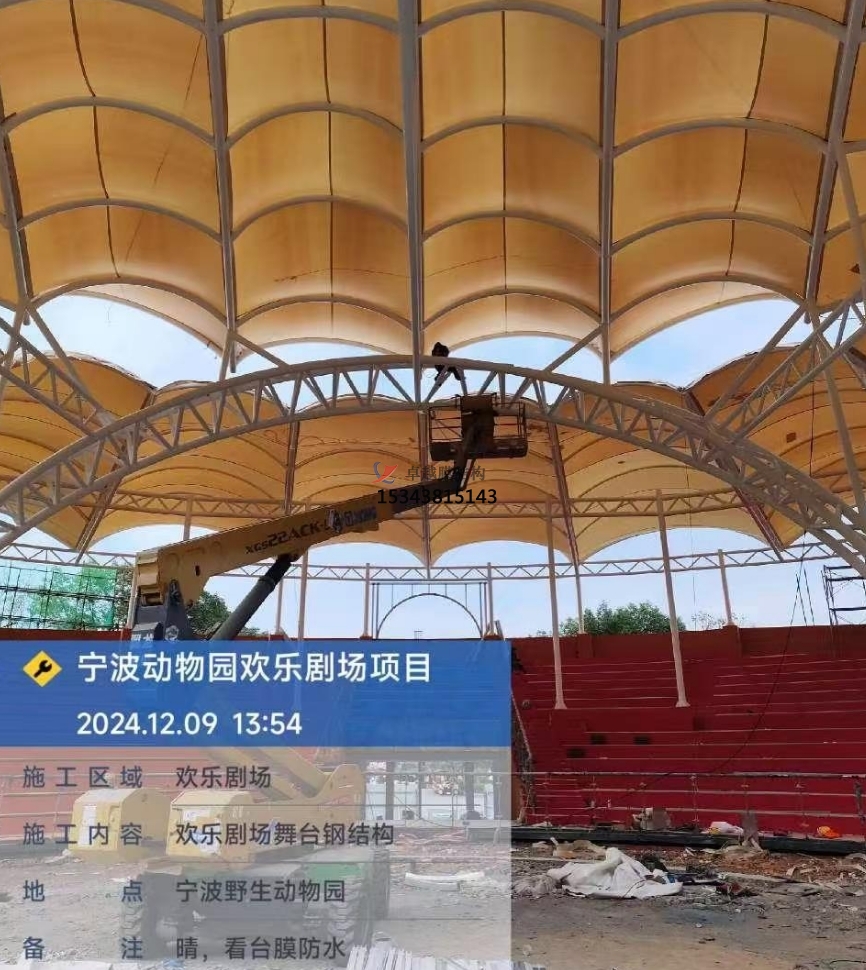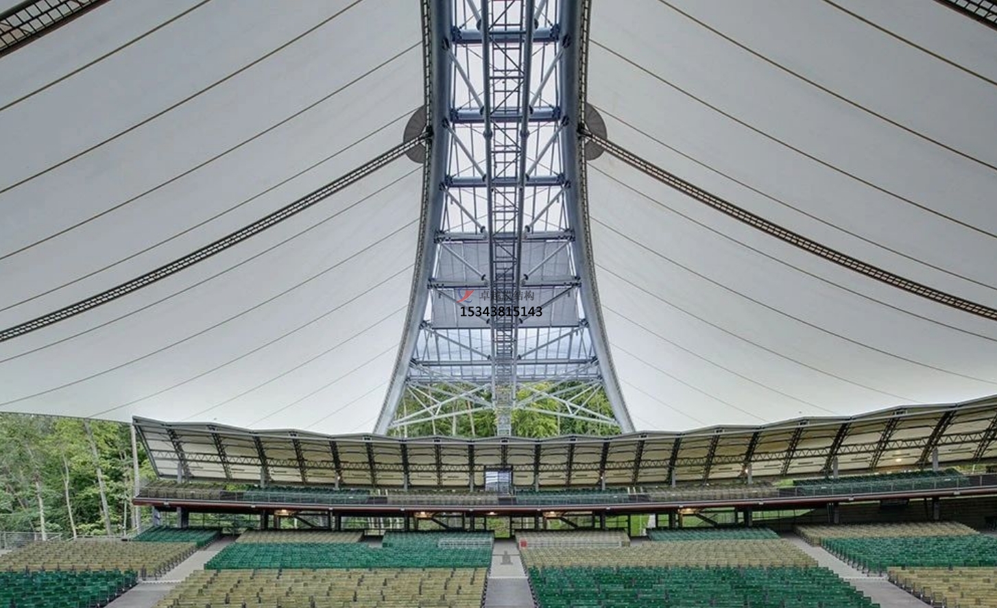 PTFE膜材可以承受比較大的預應力,更好的剛性,所以使用PTFE膜材不僅要考慮膜材的抗拉強度,還要考慮預應力的釋放。