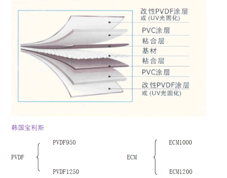 C類是三類中更次的,以聚酯(滌綸)織物為基材涂PVC而成。按涂層材料分,有聚四氟乙烯( PTFE)、聚偏氟Z烯( PVDF)、聚氟乙烯( PVF)、聚氯乙烯(PVC)、聚氨酯(PU)、橡膠等,它的壽命因不同的表面涂層而異,一般可達(dá)12- 50年。 [聚乙烯(PE) :塑料主要成分]