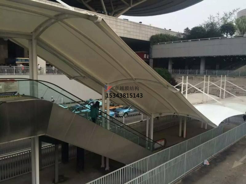 地鐵入口使城市公共空間與建筑空間相鄰的界面,成為城市空間的組成部分它是人們視覺更先接觸的部分,因此,除了功能以外,還應(yīng)有很強(qiáng)的標(biāo)識性,并能體現(xiàn)建筑的個性,是建筑環(huán)境和城市景觀的重要組成部分。由于膜結(jié)構(gòu)獨(dú)特的造型是其他結(jié)構(gòu)類型無法比擬的,故成為近來建筑入口經(jīng)常采用的形式。
