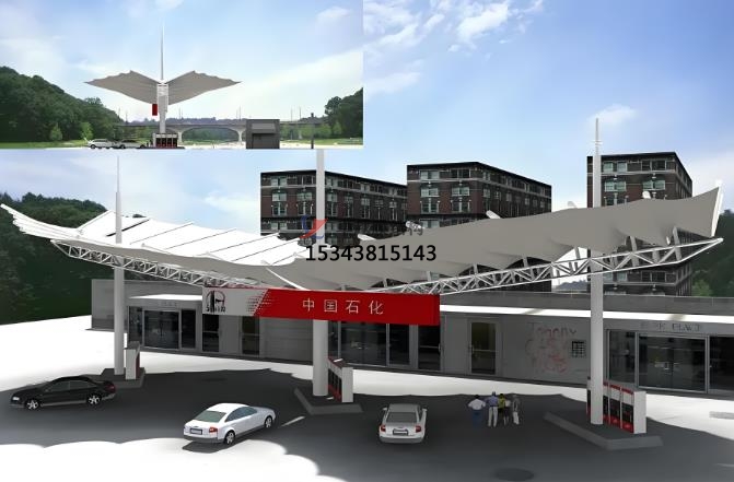 隨著綠色建筑理念普及,張拉膜結構在加油站中的應用將進一步拓展,例如結合光伏發電膜材實現能源自給,或通過智能化控制系統調節遮光率。其輕量化、高自由度的特點也將推動更多創新型服務空間的設計。以下是關于加油站張拉膜的相關介紹: