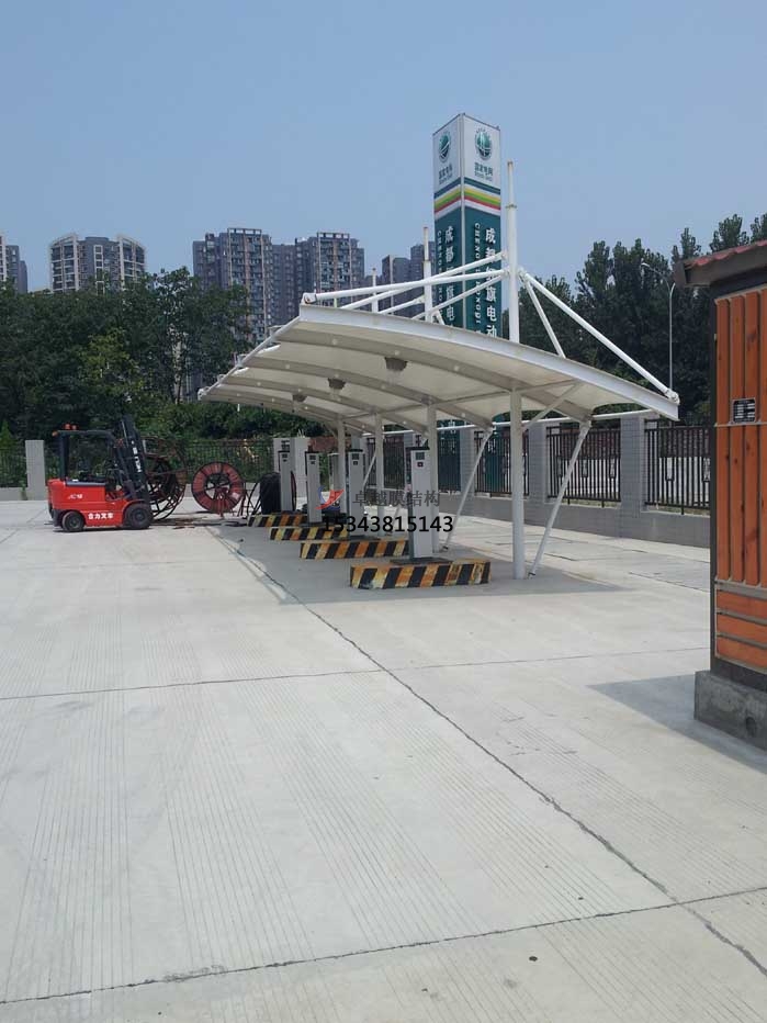 充電樁雨棚 隨著電動汽車的快速發展,充電設施的建設成為了市場的一個熱點話題。膜結構充電樁作為一種新型的充電設施,因其獨特的外觀和便利的安裝方式,受到了越來越多的關注。膜結構充電樁的成本到底是多少呢?其在市場上又有哪些優勢呢?