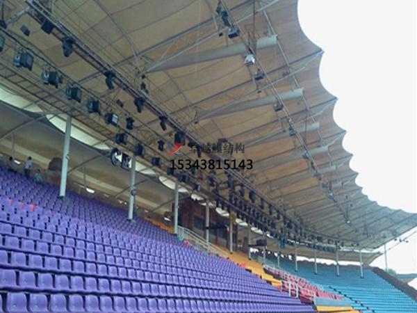 由于膜材的光透性,白天陽光可以透過膜材形成慢射光,使室內達到和室外幾乎一樣的自然效果,因此膜結構能創造出與自然環境相媲美的空間形式。體育場看臺采用膜結構的設計,膜結構的張拉樣式無形當中增大了空間跨度,輕輕松松的將整個的看臺處被覆蓋,在簡化了建筑結構的同時建筑重量也輕松很多,讓施工更簡便,還降低了施工工人的危險系數,縮短了工程的建造工期。