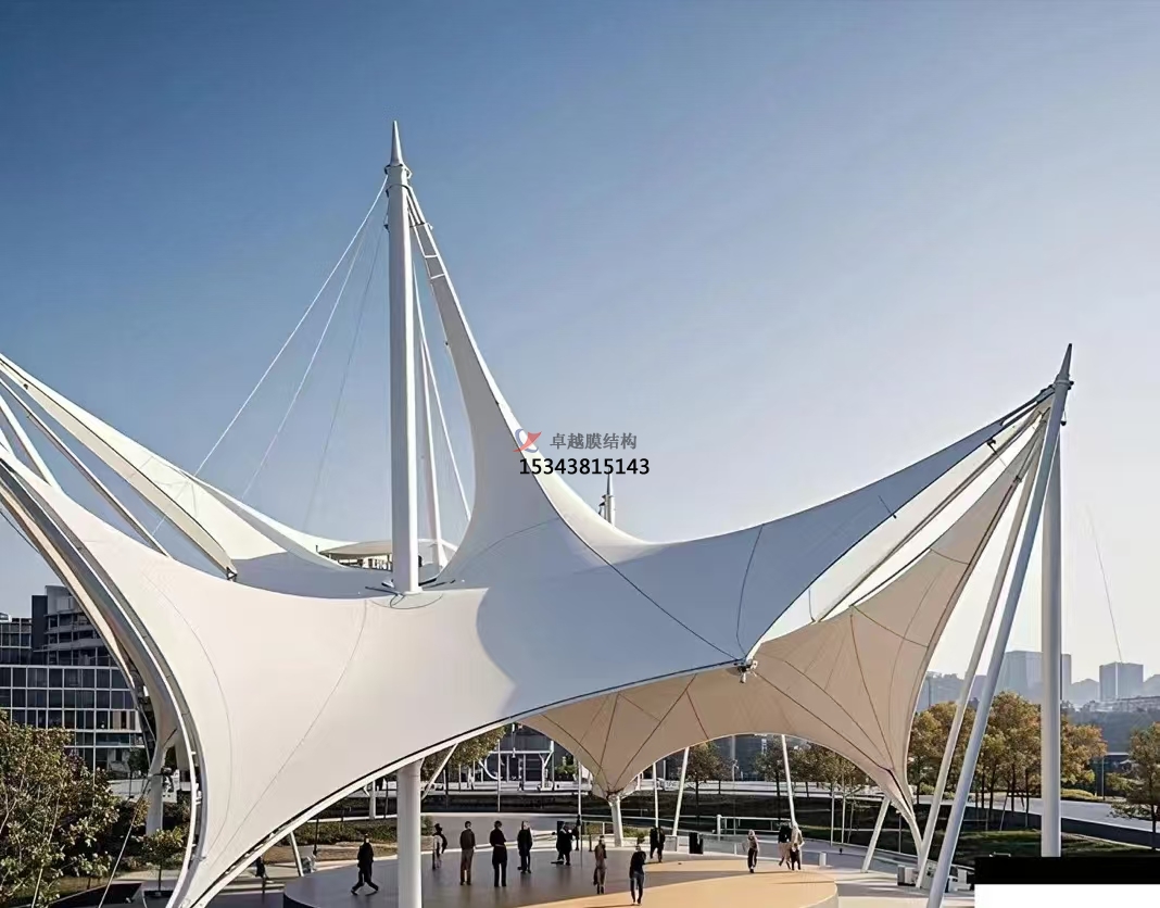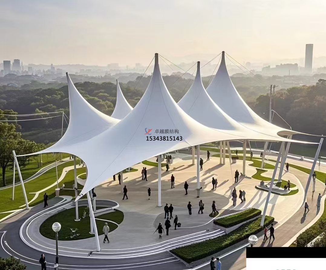 景觀膜結(jié)構(gòu)在實用功能上同樣表現(xiàn)出色。其輕盈的材質(zhì)和合理的受力體系使得膜結(jié)構(gòu)能夠跨越較大的空間,形成開闊無阻的幅度,為各種戶外活動提供了理想的場所。同時,膜結(jié)構(gòu)建筑還具有良好的透光性,白天能夠充分利用自然光線,降低能耗;夜晚則能透出柔和的燈光,營造出夢幻般的氛圍。