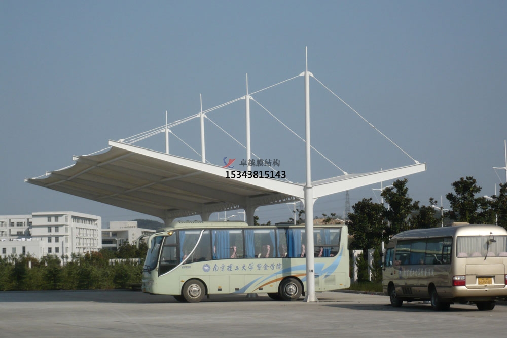 膜結(jié)構(gòu)停車棚,自重輕,具有良好的受力特點(diǎn)——成為大跨度空間結(jié)構(gòu)的主要形式之一。停車場(chǎng)的規(guī)劃和建設(shè)成為現(xiàn)代城市規(guī)劃的重要組成部分,在以后的建設(shè)里會(huì)變得越來(lái)越重要。膜結(jié)構(gòu)輕巧、別致的造型在停車場(chǎng)及候車廳的建設(shè)中擔(dān)當(dāng)了重要角色,除了滿足防風(fēng)雨、防日曬等基本功能外,并有較好的標(biāo)識(shí)招攬效果,展現(xiàn)了人們個(gè)性化的一面。