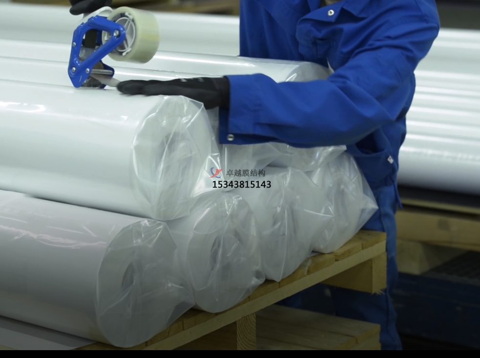 刀刮法直接涂層生產工藝具有PVC層與基布粘接牢靠、焊接性能良好、材料使用年限長、涂層織物結構穩定、色牢度好等優點,產品得到越多的應用。通過改變工藝方法可以進一步增進膜結構看臺膜材的使用性能。
