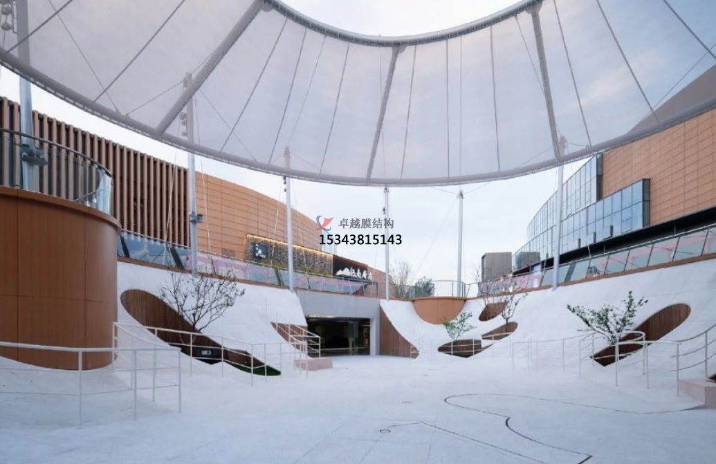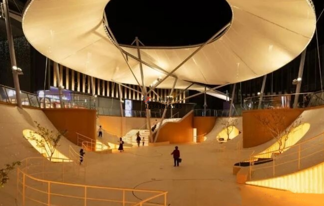 但不管怎么有格調的下沉式商業。廣場,它也是一個半露天的公共空間,如果缺乏遮陽避雨設施,無法提供更加舒適的休閑環境,因此,在下沉廣場上方增設頂蓋是非常必要的,而且一個兼具美觀、時尚、實用的頂蓋也是建筑的加分項。