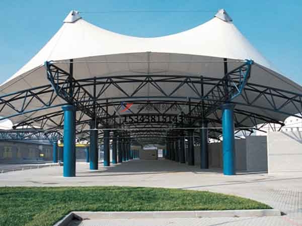 膜結構車棚按其結構形式可分為鋼結構、張拉結構及充氣結構;按膜材特性又可分為永久性膜結構(膜材使用年限可超過25年)、半永久性膜結構(膜材使用年限為10-15年)及臨時性膜結構(膜材使用年限為3-5年);按膜材成分又可分為PVDF膜材、PTFE膜材及ETFE膜材。