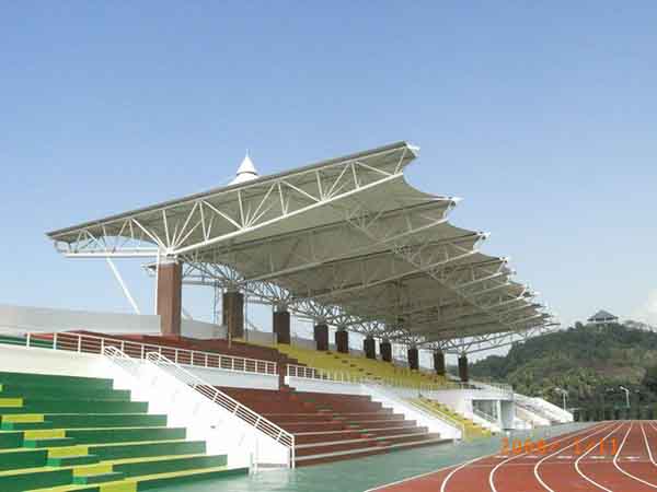 張拉膜看臺主要用于各類地方體育場主席臺雨棚,各類學(xué)校體育場看臺雨棚遮蓋,我公司是國內(nèi)較早從事大懸挑張拉膜結(jié)構(gòu)看臺設(shè)計施工的專業(yè)廠家,下面介紹一下我們在九江市周邊縣市完工的一些張拉膜看臺設(shè)計施工案例,我公司先后在九江周邊承接了九江學(xué)院張拉膜看臺雨棚、九江職業(yè)技術(shù)學(xué)院張拉膜看臺罩棚、九江職業(yè)大學(xué)張拉膜看臺遮陽棚等設(shè)計施工項目,簡介如下: