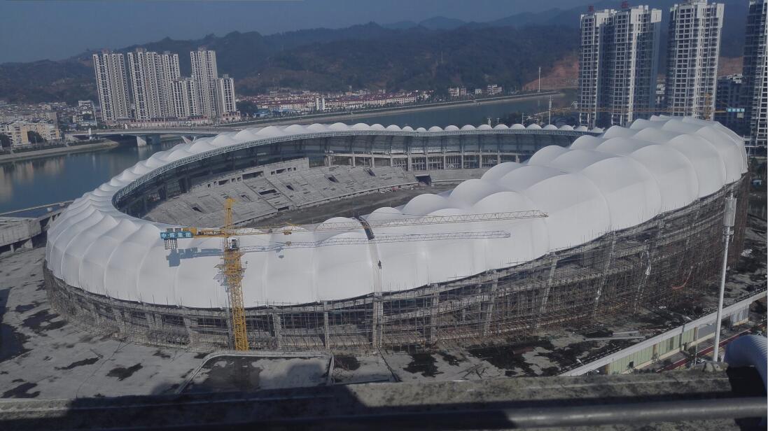 項目名稱:張家界市桑植縣體育館附近 膜材使用面積:21800㎡ 項目簡介:該項目位于西溪坪渡口社區,規劃面積50公頃, 總建筑面積95.6萬平方米,包括一個20000座的綜合體育場,一個容納5000人的室內綜合館、一個容納4000人的室內游泳館、一個容納2500人的國際會展中心以及為之配套服務的其他建筑和場地構成。投資總額4.7億人民幣。項目建成后,不僅會成為一個城市標志性建筑,能提高城市的品位,同時可改善城市的規劃布局,對城市的改造和發展有著較大的促進作用。" />
