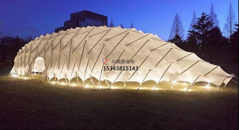 膜結構幕墻是膜結構在建筑外圍護結構的應用,具有膜結構的共同特點和優點:膜結構是一種非傳統的全新結構形式。充滿張力且富于變化的曲面,自由靈活的大空間,透明、半透明膜材所形成的明亮而又柔和的室內環境,桅桿、拉索、精致的金屬節點等所體現的富有現代氣息的構造技術,這些特色使膜結構為人們提供了有別于傳統結構的全新視覺感受,為建筑設計(包括建筑環境設計)提供了前所未有的廣闊空間和許多新的可能性。