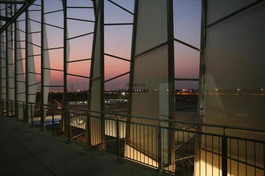 織物幕墻膜材料為微孔面料,通透效果好,不阻擋室內朝室外的視覺。微孔設計,使其具有極佳的遮陽及隔熱效果,能夠阻擋70%以上的熱能,最大限度節省電能。