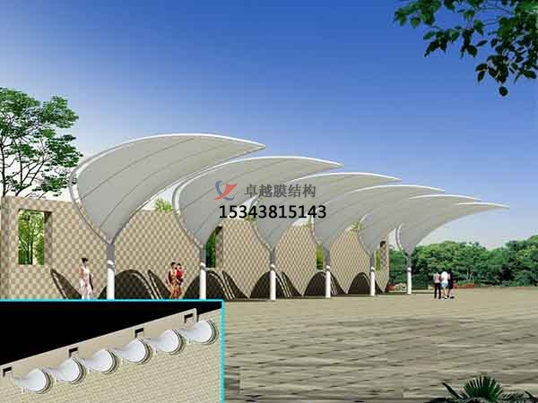 膜布局沖破了傳統的建筑布局模式,存在造型精良、超脫天然、融藝術、力學于一體,可充分發揮建筑師的設想力,建造成各類造型,且顏色豐富,膜布局被譽為21世紀的今世高科技綠色建筑。