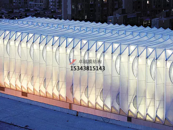膜結構建筑設計應根據建筑物的使用特點和總平面要求,合理確定排水坡度和泄水位置,確保膜面排水順暢;在雪荷載較大的地區,應采用較大的膜面坡度和必要的防積雪措施。