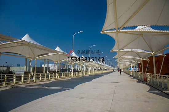 四、根據膜材料的有效使用年限應及時進行替換,膜結構建筑物(building)的全部檢修維護項目應包括膜面的形狀、變形、初期張力(解釋:物體受到拉力作用時的相互牽引力)狀態、全部或局部(part)的褶皺、破裂和斷裂(fracture)。膜結構價格膜材料具有一定的透光率,白天可減少照明強度和時間,節約能源;夜間彩燈透射可形成絢爛的景觀。而且,膜結構能夠拆卸,易于搬遷,特別是在建造短期應用的大跨度建筑時,更為經濟。膜結構停車棚膜建筑中采用具有防護涂層的膜材,本身不發黏,落到膜材表面的灰塵可以靠雨水的自然沖洗而達到良好的自潔效果,同時保證建筑的使用壽命。從氣候條件看,膜結構建筑適用的地域廣闊。