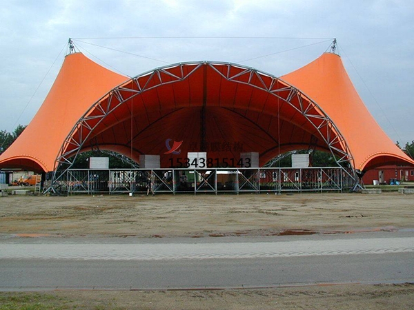 設(shè)計師在更初對舞臺膜結(jié)構(gòu)的構(gòu)造設(shè)計時充分發(fā)揮了空間想象,通過不斷的構(gòu)思及設(shè)計靈感往往設(shè)計出具有獨特風格的類型。還記得示一膜結(jié)構(gòu)在廣富林公園里建造的舞臺膜結(jié)構(gòu)嗎?那就是一個馬鞍造型的舞臺膜結(jié)構(gòu),與傳統(tǒng)的舞臺造型相比增加了很多優(yōu)點特性。