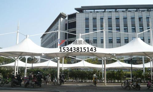 自行車棚施工時(shí)關(guān)鍵的是在薄膜曲面內(nèi)施加初期張力。如果初期張力達(dá)不到設(shè)計(jì)要求,不但會(huì)產(chǎn)生松馳和皺折,且其剛度不能夠抵御外荷載,會(huì)產(chǎn)生過木變形,影響結(jié)構(gòu)正常使用。